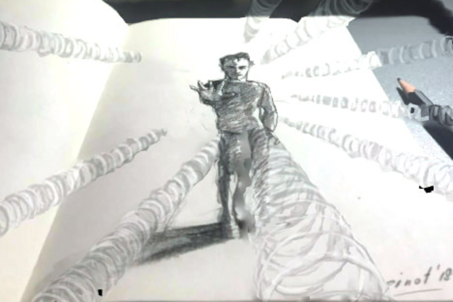 Ha compartido algunos de sus dibujos en Facebook, después de pasarlos por Photoshop para aplicarles ese efecto tridimensional.
